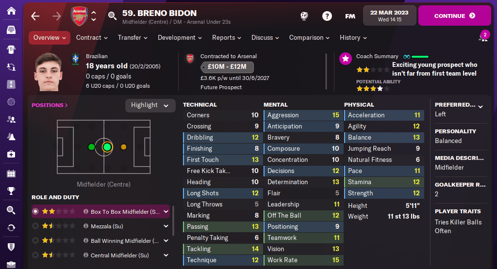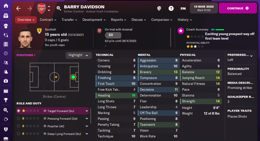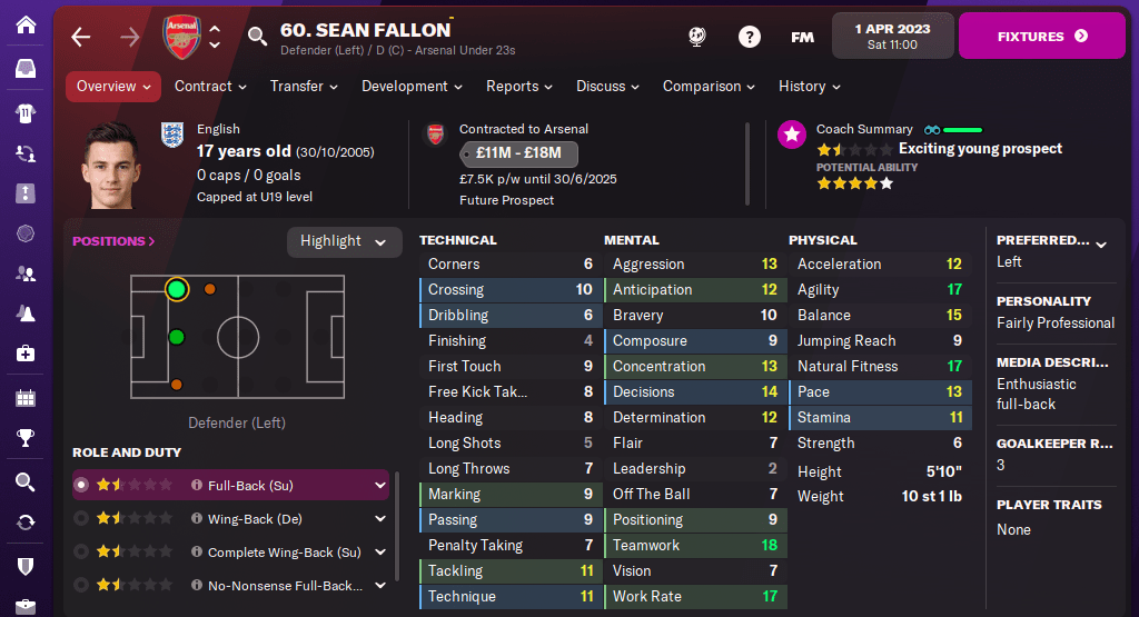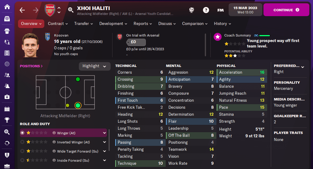 It’s important to stress that 3* potential in a Premier League intake is not bad. Several of our leading players – including Tierney and Martinelli – are rated at 3* current ability, which gives you a good idea of what these kids are being compared to. Unfortunately, a closer look at the class of 2023 shows that even the hottest prospects have some serious flaws that will be very difficult to rectify.