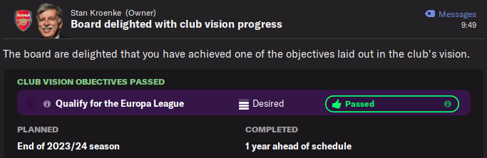 After the match, Stan Kroenke marked our trimph by basically telling me to go easy on the champagne (not that I drink much anyway). On the other hand, he was delighted that we’d qualified for the Europa League a year ahead of schedule… even though winning the EFL Cup technically only qualifies us for the Europa Conference League. You’re a weird guy, Stanley.