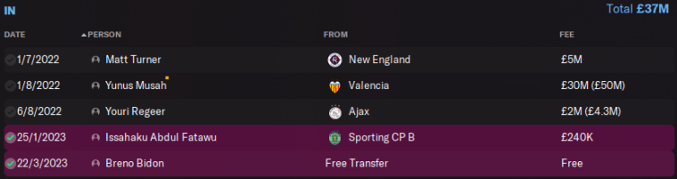 That left Takehiro Tomiyasu as our only natural right-back, but I decided not to sign a replacement immediately – mainly because top-class British players are too expensive mid-season, and neither Calvin Ramsay nor Brooke Norton-Cuffy is quite ready to step up to the first-team. Also, the gaffe-prone Benjamin White had shown himself to be a surprisingly competent right-back who can fill in for Tomiyasu if required.