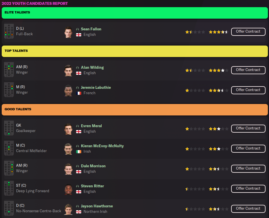 You may not just want to offer contracts to the players your HoYD recommends, or even those players with high potential? It’s worth at least having a look at all the players’ attributes and profiles first, and then decide which ones are worth developing.