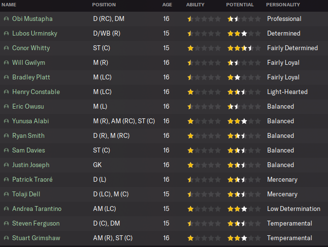 It’s also worth looking at your players’ personalities. A 5* potential youngster may not amount to much if their personality stinks, while a less talented player with a more professional attitude may at least have a better chance of hitting their potential.