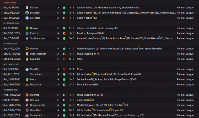 2025 ended with three high-scoring away wins against bottom-half opposition, giving Eddie the chance to fill his boots again after a patchy run of form. Credit also to our playmaker Martin Ødegaard, whose hat-trick turned things around against Bournemouth.