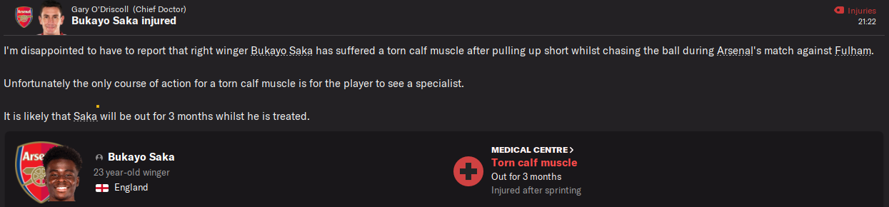 That’s Bukayo Saka out until November. Can he ever catch a break?