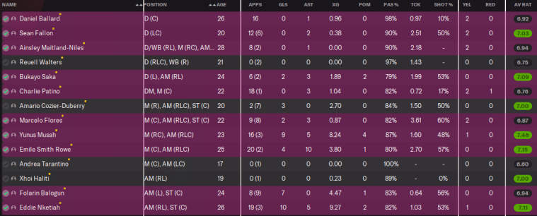 Nketiah and Balogun haven’t scored as often as I’d have liked, but I feel like it’s only a matter of time before they’re back on top form. While they can be quite effective as Deep-Lying Forwards, it’s a role that neglects their exceptional pace and acceleration, which are their biggest strengths. Our counter-attacks also aren’t as effective when they’re dropping deeper instead of running onto Saka’s crosses.