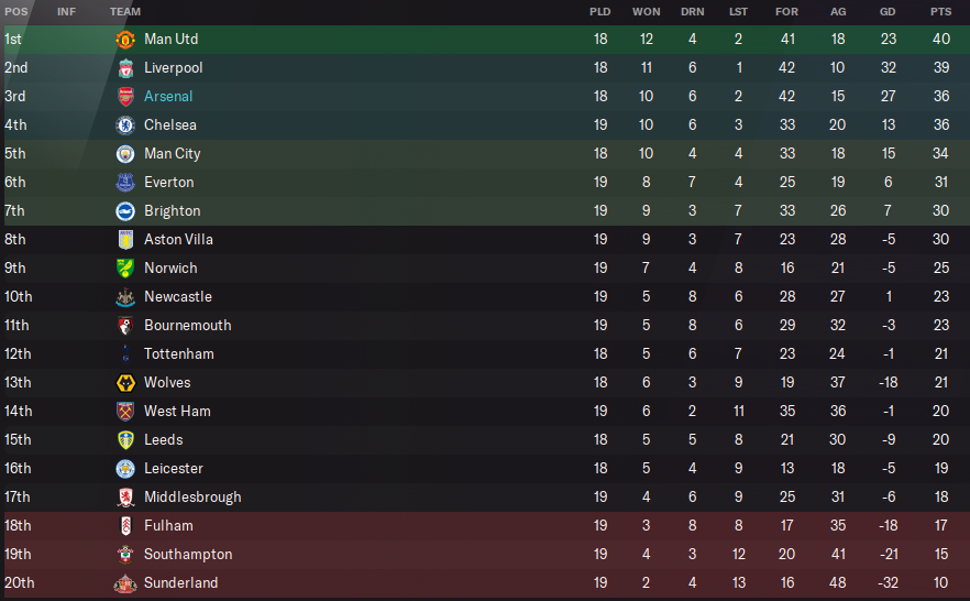 We head into the second half of the season sitting in 3rd place – four points off the lead. We’re the joint-top scorers in the league behind Liverpool and have played like genuine contenders at times, but we’re also dropping too many cheap points away from home.