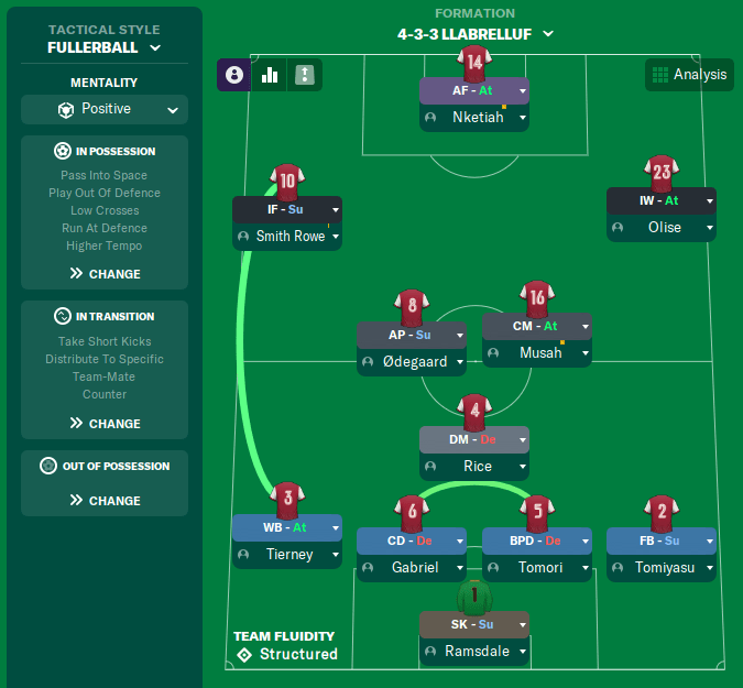 These changes haven’t done too much harm to his colleagues on the left wing either. Though Emile Smith Rowe isn’t as much of a direct attacking threat, he’s still contributing enough to satisfy me. Emile also gets plenty of support from the attacking left-back, with both Kieran Tierney and his young protégé Sean Fallon catching the eye.