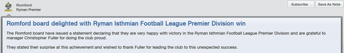 I’m considering managing my hometown club Romford, who were recently relegated to the Essex Senior League (at the 9th tier of the English pyramid). I had a long-term save with the Boro on FM13, where I took them up to the Conference South before achieving greater success elsewhere. However, any potential return to Romford depends on me finding a good and stable English non-league database.