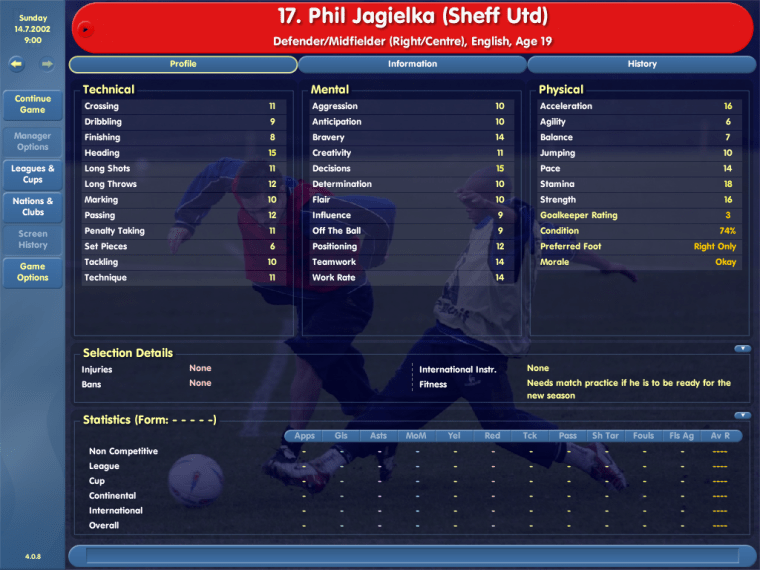 Jagielka was one of the Football League’s hottest talents on CM4, possessing plenty of stamina and some decent technical attributes. The Sheffield United prospect was a versatile defender and midfielder, though his goalkeeper rating of 3 is a little suspect if you ask me…