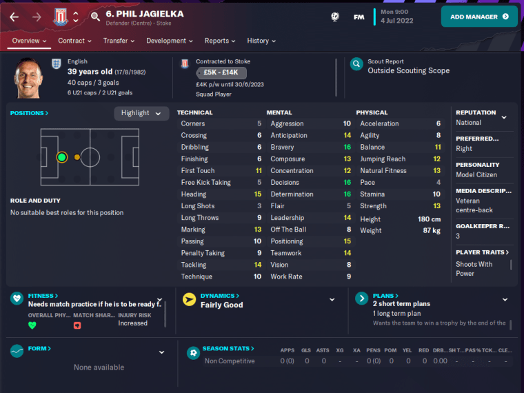 Some of you might also remember Phil’s older brother Steve Jagielka, who was a midfielder/forward at Shrewsbury for several years and was still there on CM4, just before the Shrews’ relegation to the Conference. Tragically, Steve passed away in March 2021, shortly after his 43rd birthday.