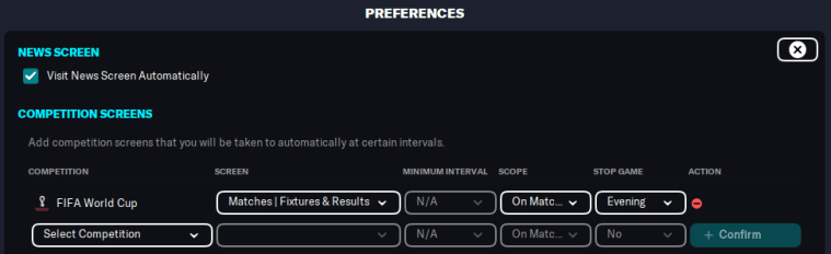 You might also want to go into your Preferences and set up Screen Flow. This will help you keep track of results and/or statistics from any major tournaments you’re interested in. Everything is explained in this guide, which I wrote for FM23.