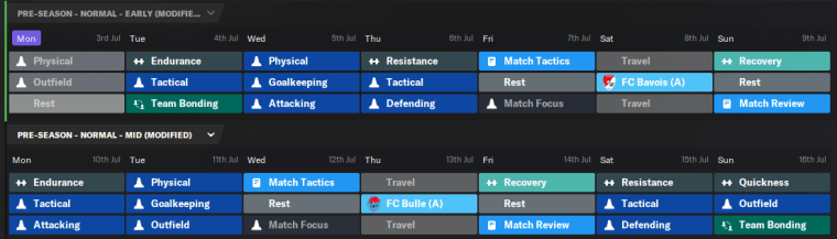 While it is tempting to fill every training slot, don’t forget to put in rest and/or recovery sessions after a match or a high-intensity training day. You don’t want to knacker your squad before the first league game, do you?