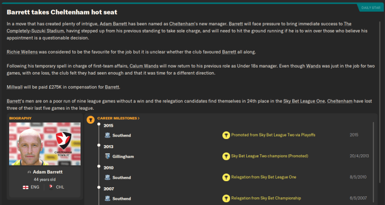 …I also lost my assistant. After six years at Millwall, Adam Barrett had taken his first managerial gig at Cheltenham, who were rock-bottom of League One.