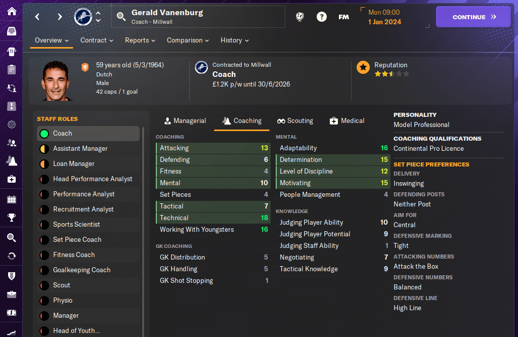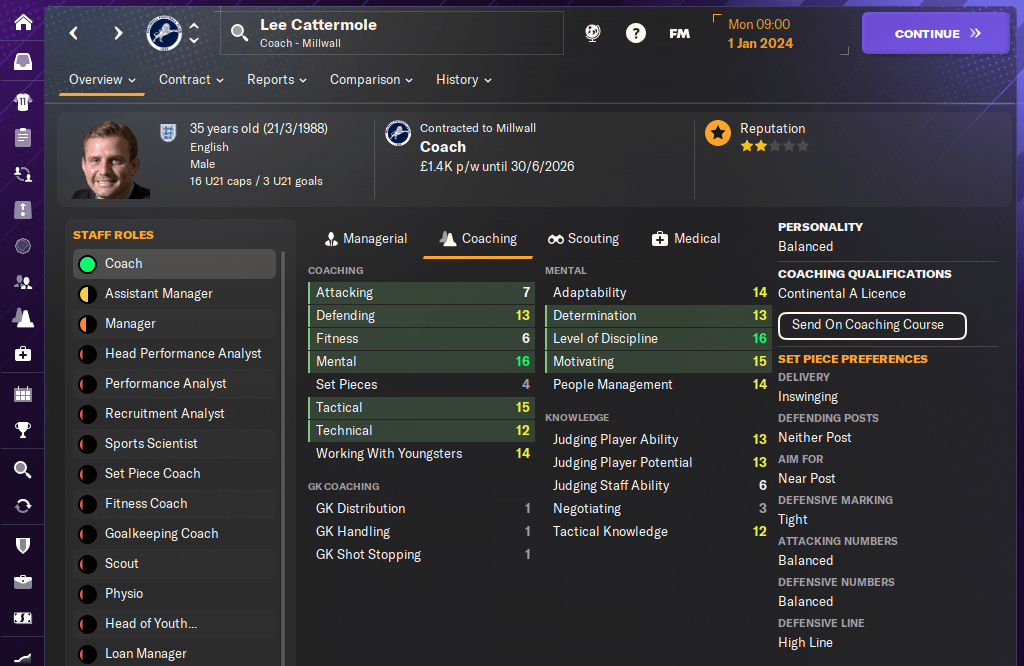 We had space to hire five more coaches, though I brought in four. First up, we needed a tactical coach with a typical Millwall attitude – a no-nonsense midfield bruiser who was always up for a scrap.