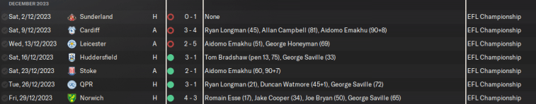Annoyingly, Flemming wants a new contract too, despite producing almost nothing this half-season – 2 goals, 1 assist, 6.62 average rating. I’ve tried playing him out wide, up front and even in midfield, but it seems that nothing can get this flying Dutchman off the ground! I’m very tempted to sell Zian in January, so we can fund another left-back, another striker, and some new contracts for McNamara and co.