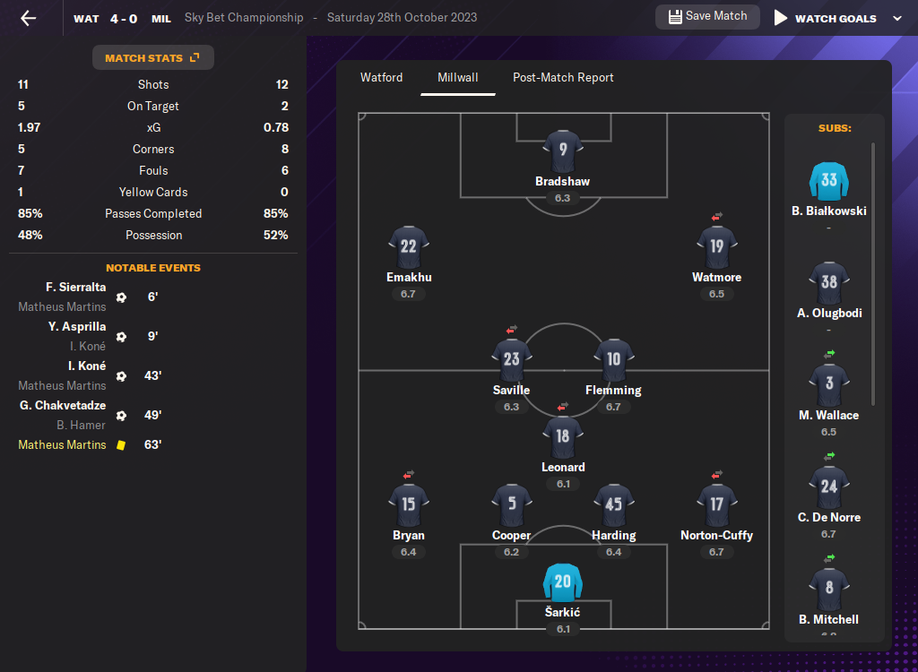 Today’s chapter will recap the first half of the 2023/2024 Championship season. Can the Millwall firewall hold firm, or will I need to make some tactical tweaks to ignite a play-off challenge?