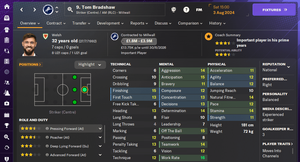 In case you missed the previous chapter, the Lions came 11th in the Championship in my first season, falling short of the play-offs once again. I’ve been hard at work in the transfer market over the summer, looking to assemble a team that can take that elusive step into the top six.