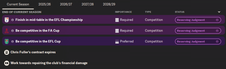 Despite nearly firing me after finishing 11th last season, the Millwall board have actually lowered their expectations this season. They would be satisfied with a mid-table finish, and they’re not bothered about the cups either. I guess this could buy me a little more time if, say, we started the season with one win from our first eight league matches.