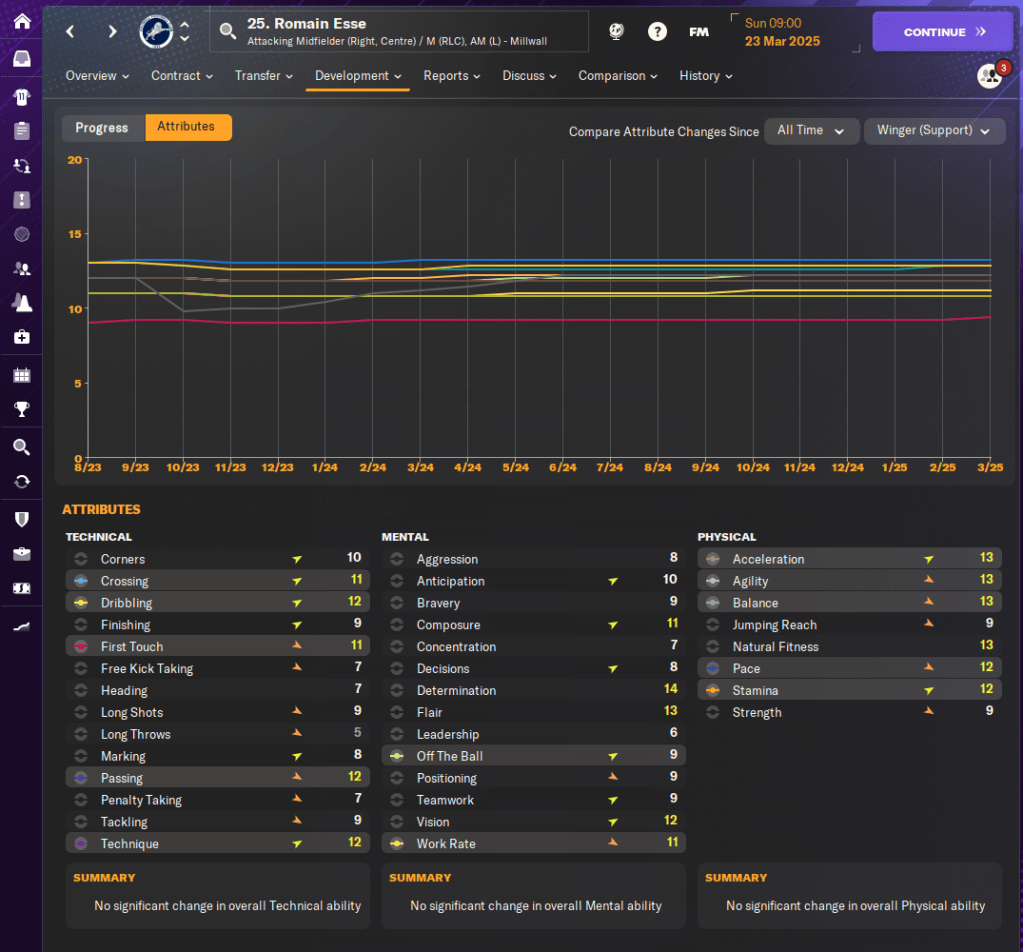 The answer is… barely, if at all. There are a few promising signs mentally, but many of their physical and technical attributes have actually regressed – not significantly, though it’s still a concern.