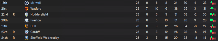 With Emakhu struggling for consistency, and both Bradshaw and Duncan Watmore in age or injury-related declines, we also lacked any bona-fide Championship quality strikers. I didn’t try to fix that until it was far too late in the January window. Frankly, I screwed up.