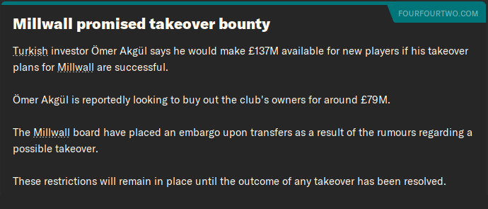 I have never experienced a tycoon takeover while managing a club on Football Manager, so to potentially have one with Millwall was quite exciting. Then again, if this mystery foreign investor was Elon Musk or a Saudi billionaire, I would probably resign out of principle.