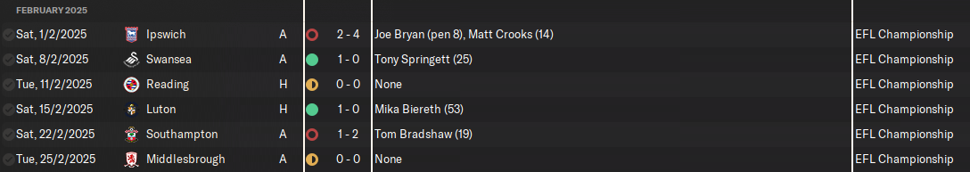 February ended with a bore draw in the north-east against Middlesbrough, but we had at least pulled ourselves a bit closer to the play-off places than we were at the start of the month. One point closer.