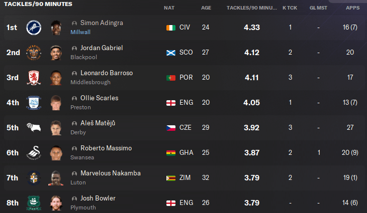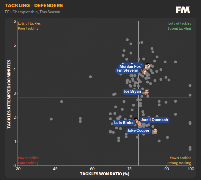 Coops’ statistics are quite astonishing, as you’d expect. As well as single-handedly making Millwall the most potent team on attacking corners, he’s in at least the league’s top five or six when it comes to Average Rating, Headers Won, Key Headers Won, Shots Blocked, Key Tackles Won, Most Tackles Per 90 Minutes…