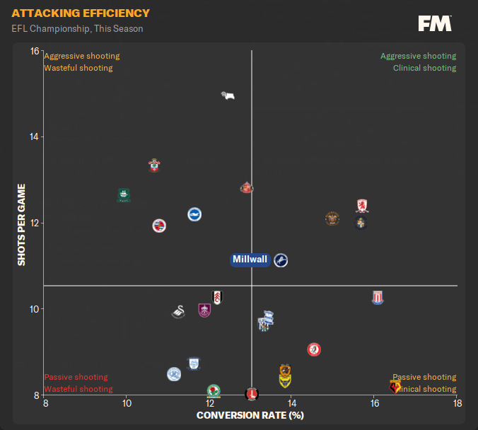 Automatic promotion isn’t completely out of the question… but it’s a big ask. Leaders Stoke have the league’s top scorer – a certain Matías Arezo – while challengers Derby, Middlesbrough and Luton also possess attacking talents that we at Millwall can only dream of.