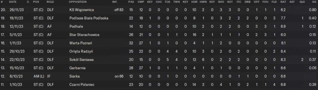 However, match number 13 would prove to be unlucky, as the scoring streak finally ended with a low-quality 0-0 stalemate with Garbarnia Kraków. To rub salt into the wounds, Podhale and Orlęta both won – bumping them back down to 3rd.