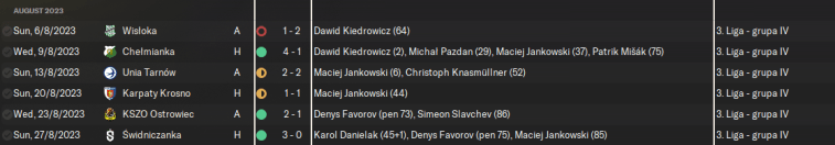 More frustration came at home to Karpaty Krosno, who had lost their opening three games. Their utter domination on possession and shots only produced a single Jankowski goal, which was cancelled out by a 94th-minute equaliser against the run of play.