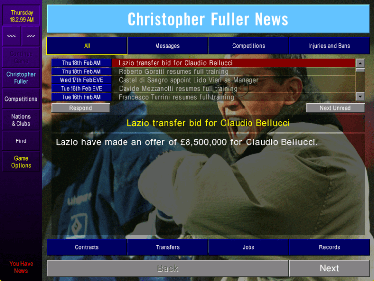 …and here was another headache. Sven Goran Eriksson really wanted to sign Bellucci for his Lazio team and had made an offer worth £8.25million. Claudio had been crucial to our success (17 goal contributions in all comps so far), so I turned it down.