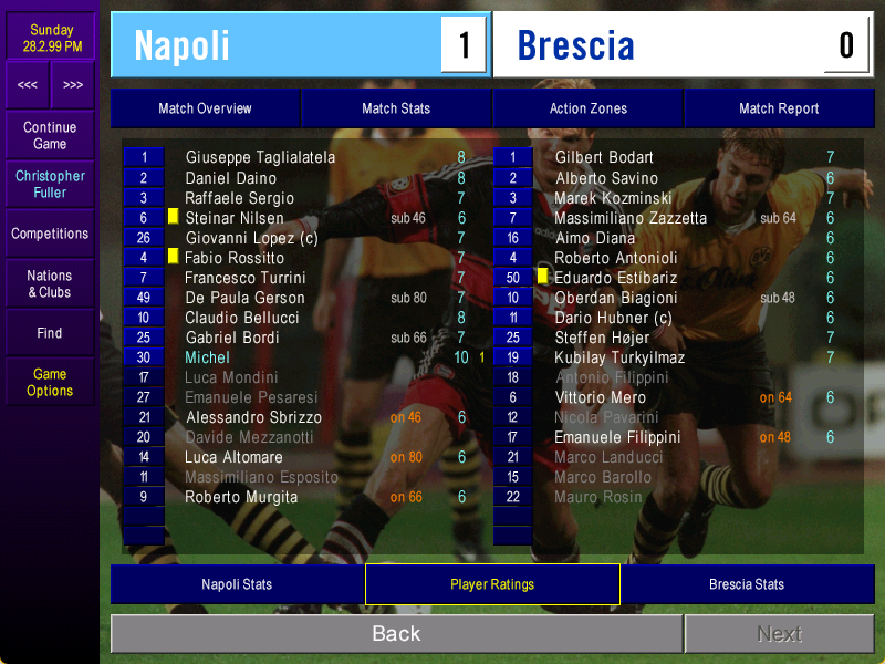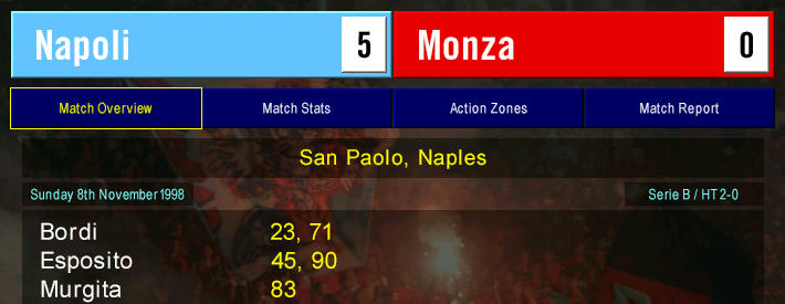 After refilling our Argentine tank, we then watched Bordi destroy Monza with two more goals and an assist in a 5-0 thrashing. Big target striker Roberto Murgita scored his first goal for Napoli, but it was an even bigger day for winger Massimiliano ‘Joe’ Esposito.