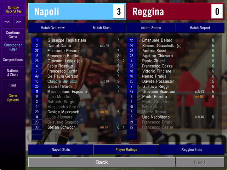 That meant the tie was still up for grabs heading into the second leg, which would be played at the San Paolo at the end of January. In the meantime, we wrapped up 1998 with three more league matches.