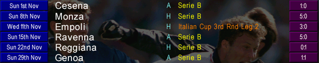 …we were soon top of Serie A! Our relentless promotion push continued when we put FIVE goals past 10-man Ravenna, including two more from a certain Argentinian fella. Meanwhile, leaders Brescia suffered their first defeat of the season after going down 3-0 to Reggiana, which meant we replaced Le Rondinelle at the summit after 10 games.
