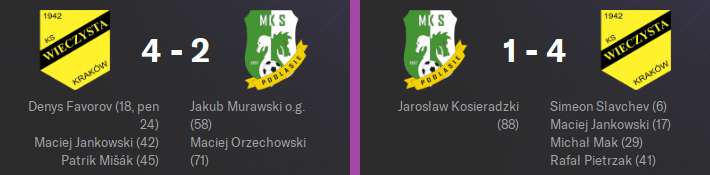 This happened to me a couple of times on my short-lived Wieczysta Kraków save, against the same opponent. Twice, we were 4-0 up on relegation-threatened Podlasie Biała Podlaska at half-time. Twice, we eased off and allowed Podlasie to ‘win’ the second half.
