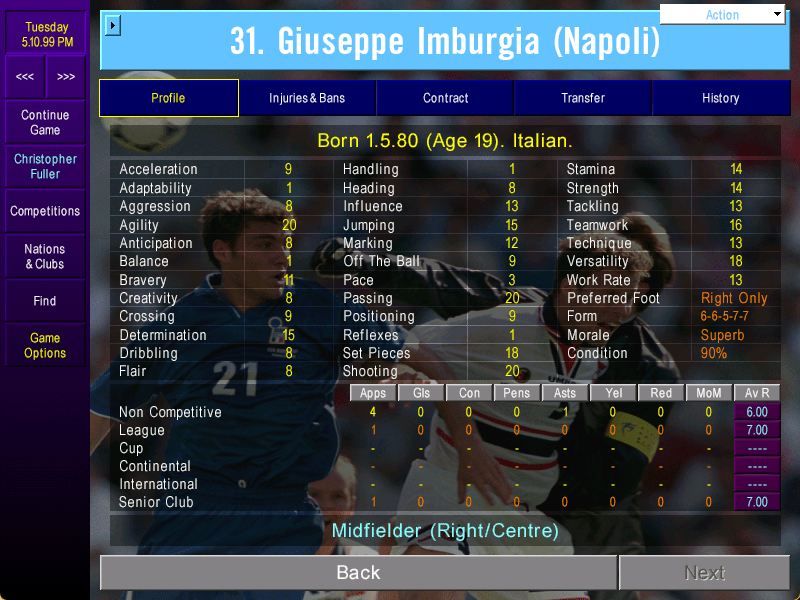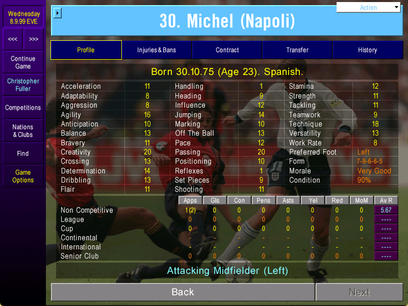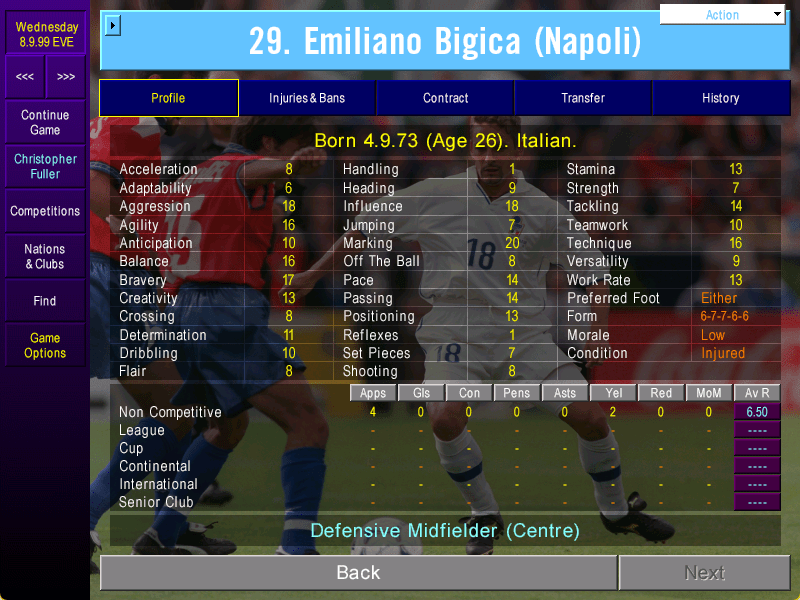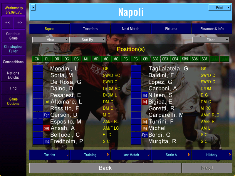 If anything happens to our star strikers, we have a couple of solid backups in burly target man Roberto Murgita and new boy Fredholm. January signing Giacomo Banchelli has been so disappointing that I’ve dropped him to the reserves and put him up for sale.
