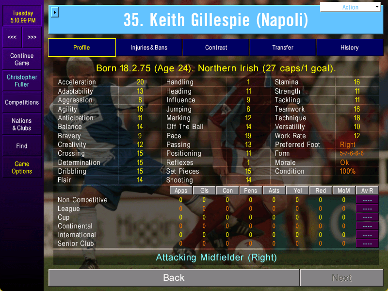 Marco Carparelli was a Serie A regular with Empoli last season and looks like a nifty winger… or at least I thought he did when I first signed him. 10 Creativity, 10 Crossing and 10 Flair are hardly amazing attributes, and his pre-season performances have been equally meh.
