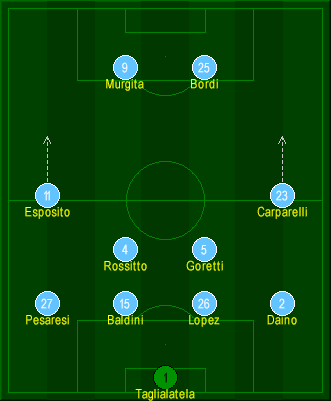 Taglialatela is our vice-captain, but the tactically astute Giovanni Lopez will wear the armband most of the time. G-Lo will usually be accompanied in central defence by either the returning De Rosa or the spirited Francesco Baldini.