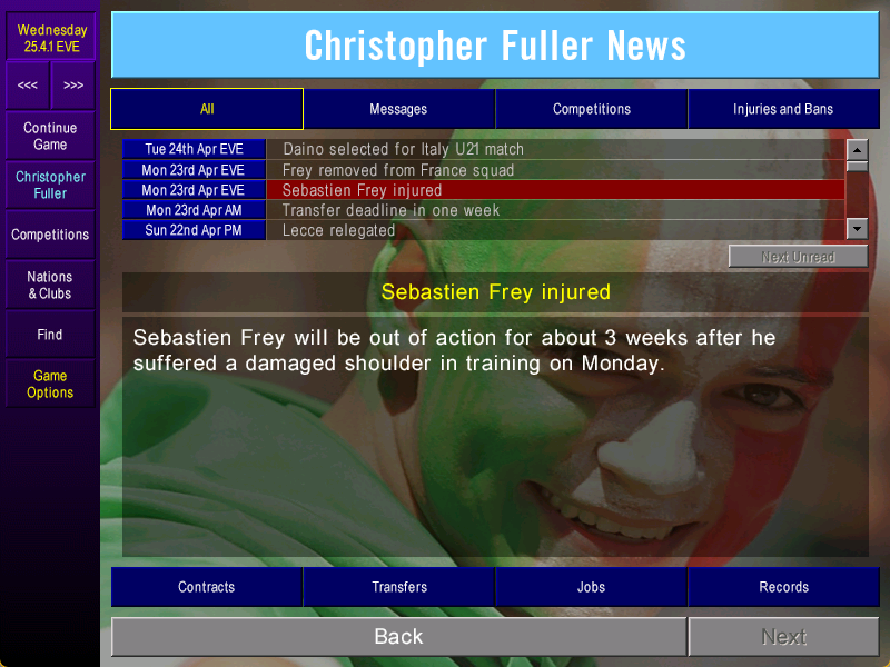 I was so fed up with Frey at this point that I wanted to fine him four weeks’ wages. Then I remembered that CM3 was the last game in the series (until Football Manager 2024) where you couldn’t fine players for poor performances.