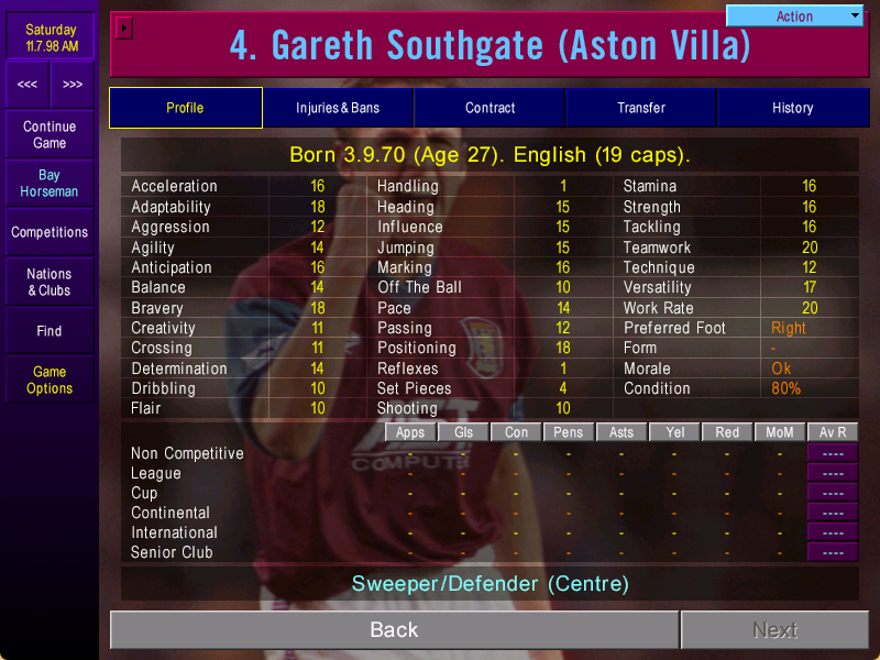 There’s our Gareth. When CM3 was released, Gareth Southgate was two years removed from THAT penalty miss against Germany – and two years away from enduring further Wembley heartache with Aston Villa. (Incidentally, in my Napoli series, Southgate went on to enjoy more success after signing for Manchester United.)