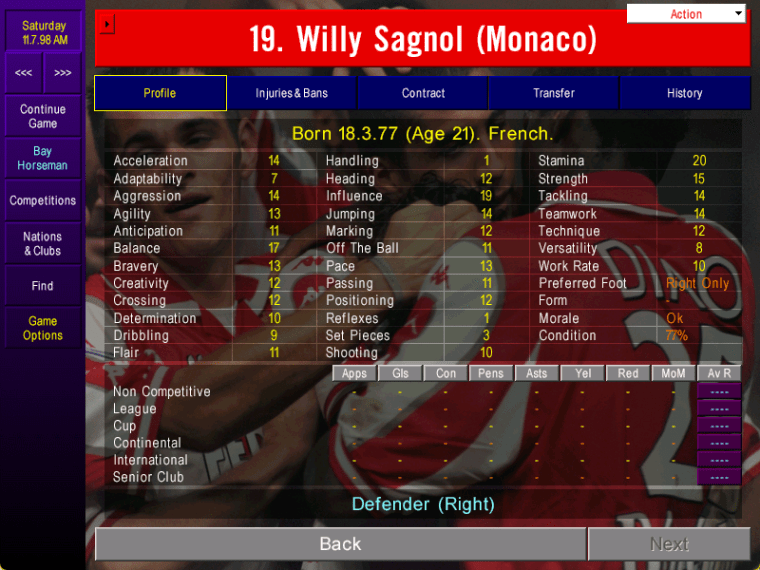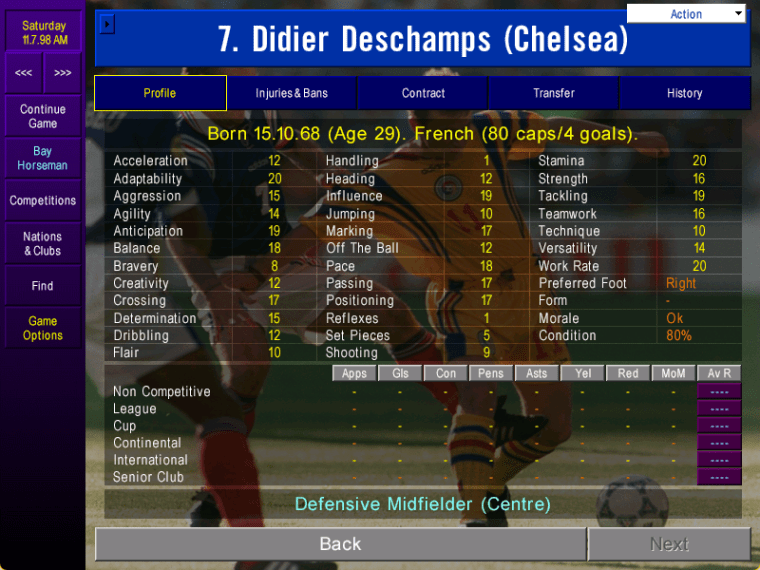 Meanwhile, assistant manager Adel Chedli was also playing in France’s top flight, starring on the left wing for Sochaux. Though fellow coach Zurab Khizanishvili made his senior debut for Dinamo Tbilisi in 1998, he had not yet come to the attention of CM3’s scouting network.