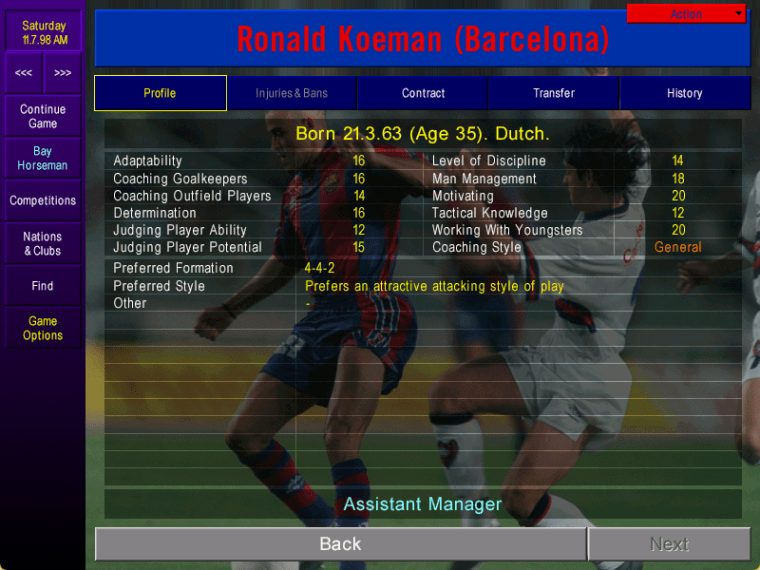 Now that we’ve mentioned Ronald, we obviously have to talk about his elder brother (and number 2) Erwin Koeman. Erwin actually played on a bit longer and retired at Groningen in 1998, so CM3 marked his first appearance as a coach. He wasn’t a very good coach on that game, mind.