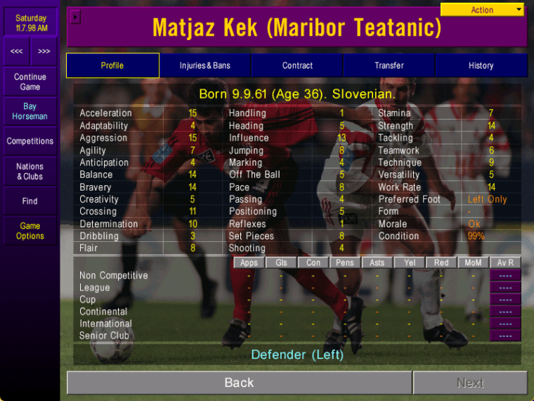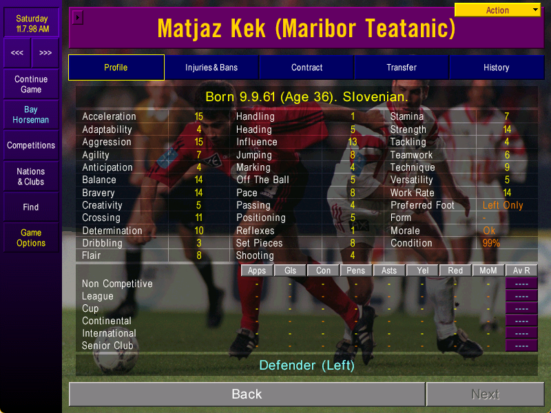 26 years ago, Slovenia’s current manager Matjaz Kek was playing his final season at NK Maribor, where he started and finished his career. Though it’s not on his CM3 profile, the veteran left-back did win one international cap for the Slovenes in 1992 – not long after their independence from Yugoslavia.
