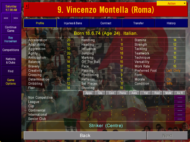 We kick off the final group by looking at yet another Italian. Vincenzo Montella – who took charge of Türkiye last year – was once a star striker in Fabio Capello’s Roma team, who were notoriously tough to beat throughout the CM3-era games. Looking at Montella’s attributes, it’s not hard to see why.