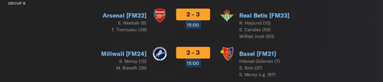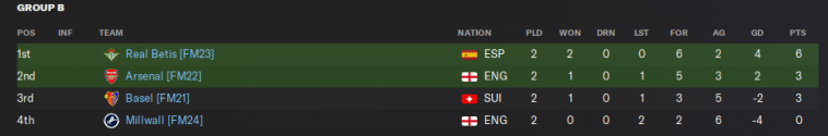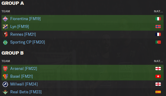 In Group B, Arsenal and their Hale End heroes from FM22 will be the team to beat. However, Basel are technically the holders of the last Fuller FM Cup from 2021, and they won’t let it go without a fight. Real Betis could also be challengers, but Millwall will be right up against it.