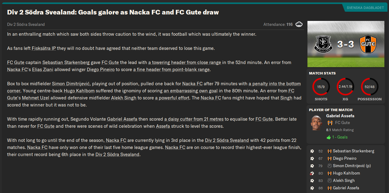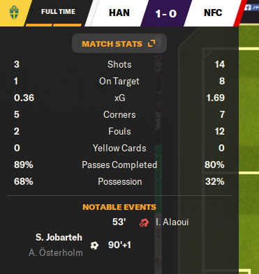 Still, that was nothing compared to our next game at Haninge. Ladies and gentlemen, introducing THE most frustrating match I’ve played on FM24!