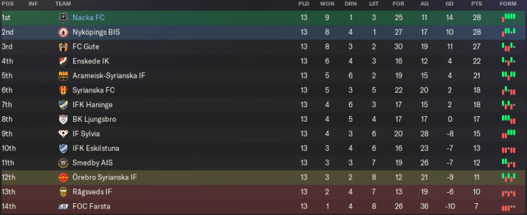 The league will also be our sole focus this season, because we won’t be in the Svenska Cupen. Only teams from the top three tiers qualify automatically for the Cupen, and the regional qualifiers are randomly chosen from teams in Division 2 and the non-playable leagues. We weren’t one of the lucky teams.