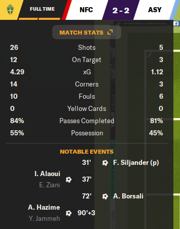 Cue our penultimate home game, against mid-table Arameisk-Syrianska (good grief, there are A LOT of Assyrian diaspora teams in Sweden). We dominated the match from start to finish, suffocated their defence, created LOADS of chances…