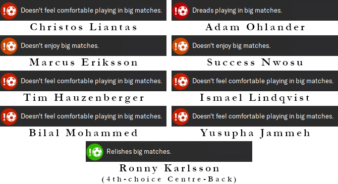 Finding some good centre-halves was a bit trickier, as other clubs kept swooping in for our top targets as soon as we offered them contracts. That said, I am happy enough with the tall and experienced Marcus Eriksson (not the former F1 driver), who will be our new captain.