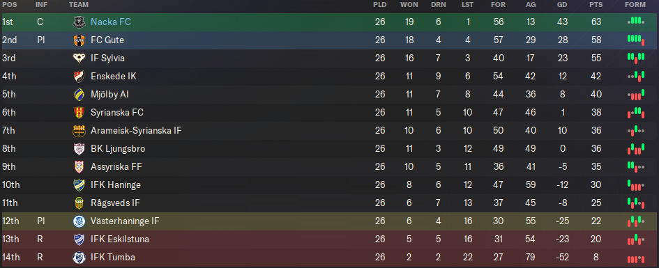 The board have promised a big wage budget increase too, which gives me plenty of room to add more quality to the squad. Survival will obviously be our main objective in the Ettan Norra… but if we can continue our incredible away record, who knows how far we can go?