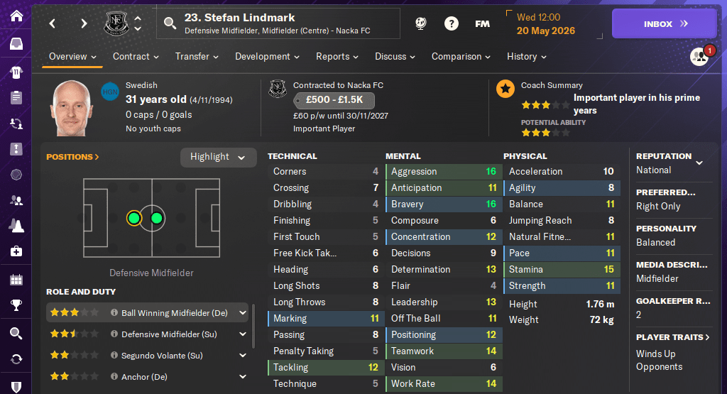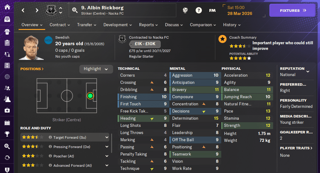 At least Tim Hauzenberger is firmly settled at Nacka. Changing Tim from a Mezzala to an attacking Central Midfielder has produced some brilliant results in pre-season, so I’m hopeful our midfield talisman can be even more productive this term.